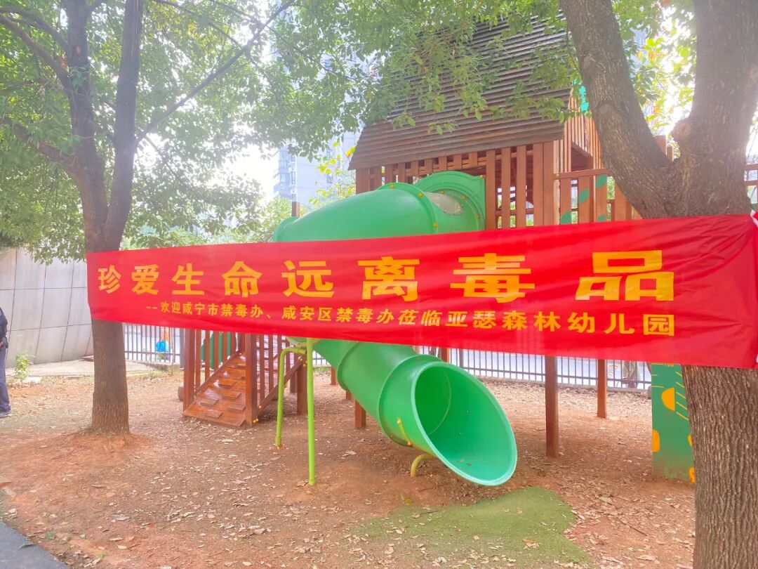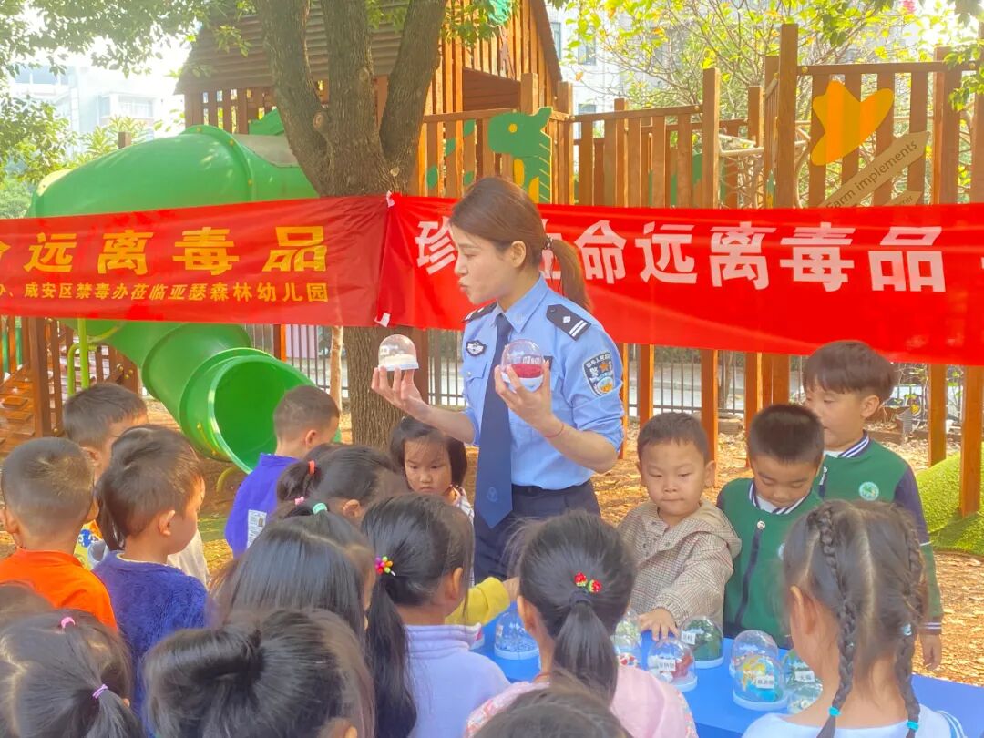 10月18日,咸宁市禁毒办联合咸安区禁毒办走进亚瑟森林幼儿园开展禁毒宣传活动。