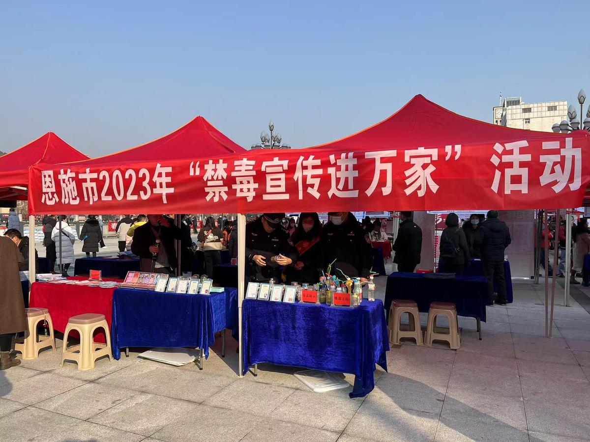 当日上午,恩施州、市人力资源和社会保障等单位联合在州工人文化宫广场举办"春风行动"现场招聘会,一百多家企业进场,提供一万多个岗位,吸引了大量有就业意向的市民进场寻找工作机会。市禁毒办与举办单位对接,把恩施市“2023年禁毒宣传进万家”活动搬到招聘会现场。