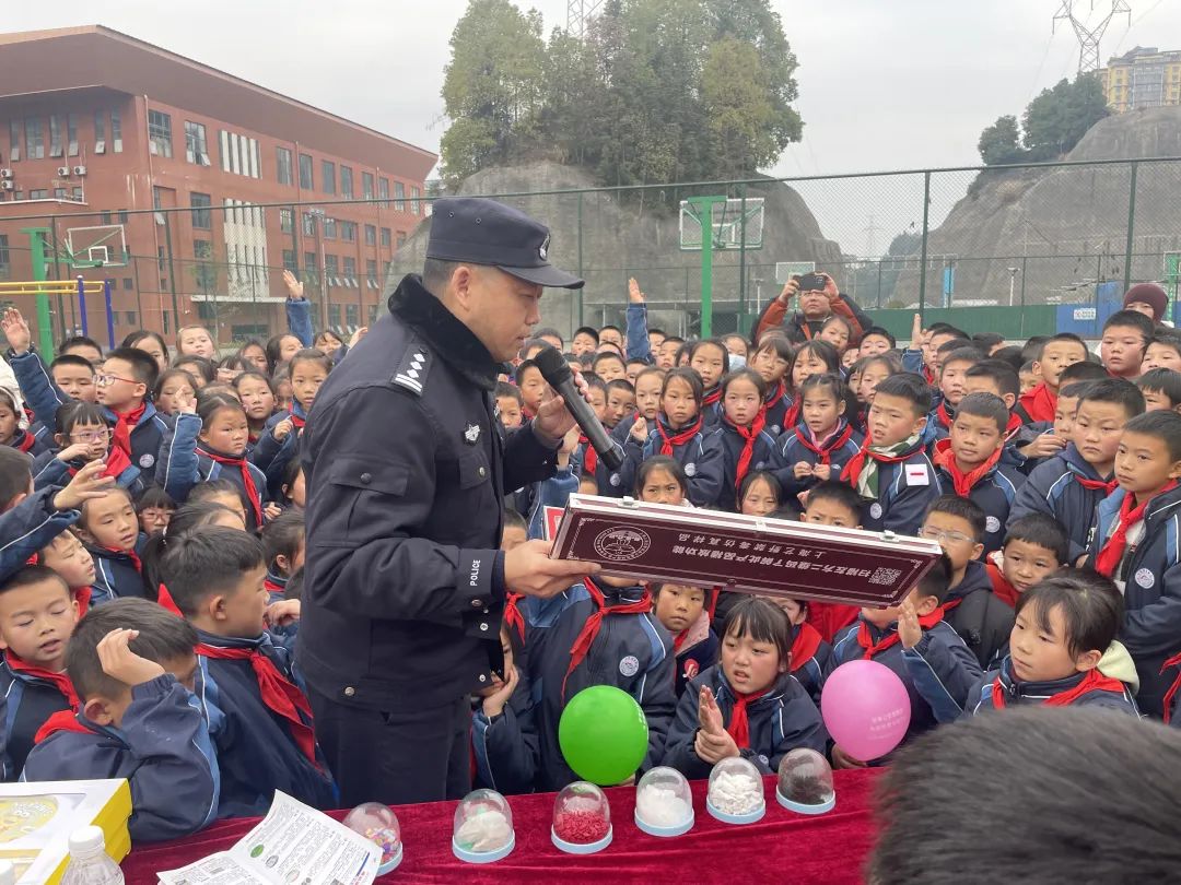 宣恩县公安局禁毒民警们与少先队员们一起奏唱国歌、重温公安警察誓词、“少年警校”授牌、交换礼物、观摩警犬训练等项目,通过灵活多样的形式宣传禁毒和反诈等知识。