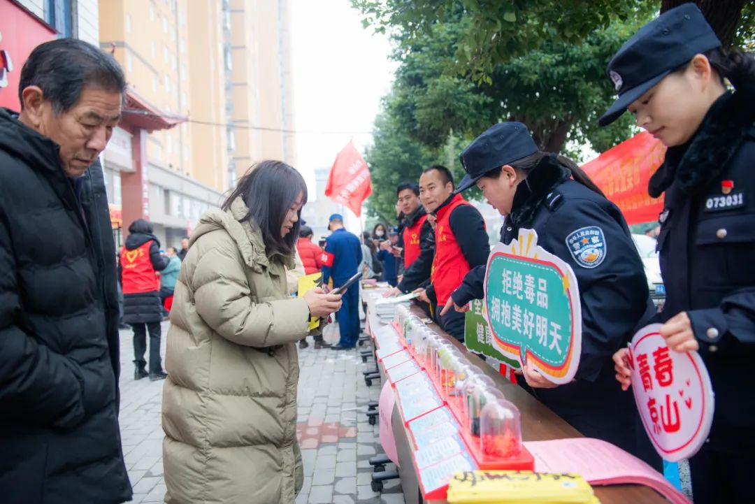 活动现场,禁毒、反诈、交通部门民辅警通过发放宣传单、展示仿真毒品模型、互动问答等方式,宣传了禁毒知识。活动吸引过往群众驻足观看,营造了浓厚的平安宣传氛围,进一步提升了群众的法治意识和安全防范意识。