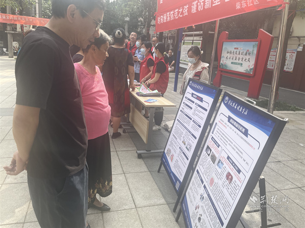 为进一步深入普及毒品危害知识,提高社区居民的识毒、防毒、拒毒意识,7月22日,在武昌区禁毒办指导下,武昌区杨园街道联合辖区派出所在柴东社区开展以“健康人生 绿色无毒”为主题的禁毒宣传活动。社区民警、禁毒社工和网格员等10余人参与现场宣传工作。