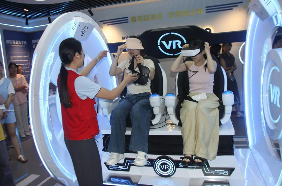 在讲解员的带领下,教师们走进谷城县禁毒教育基地,参学了我国禁毒史,了解了毒品的种类、来源、传播途径以及防范方法。通过观看各种仿真毒品模型,体验VR设备,大家对毒品的特征有了更直观的认识,进一步提升了教师禁毒知识水平和对在校学生毒品预防教育的责任感。