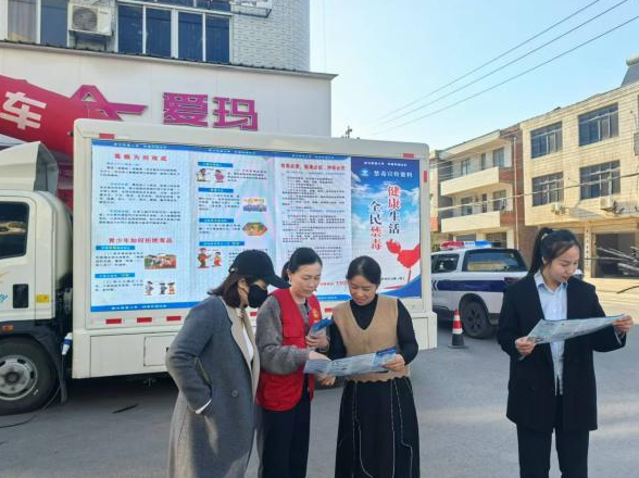 活动现场,借用移动宣传车大屏幕,播放禁毒知识,拓宽宣传覆盖面。同时,工作人员向往来行人发放宣传手册,耐心讲解常见的毒品种类。