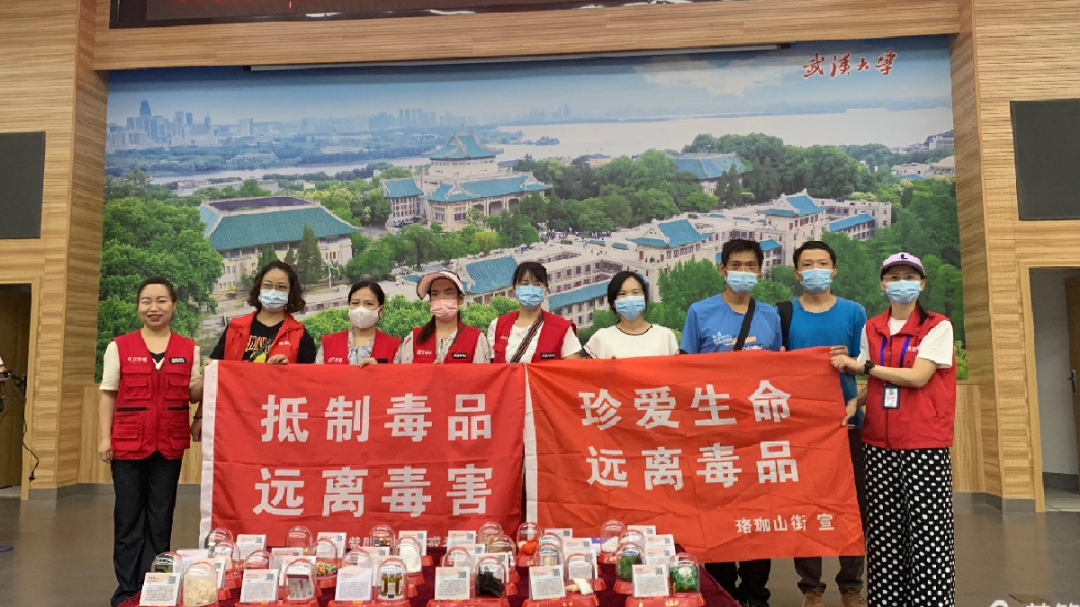 近日,武汉市洪山区珞珈山街道和紫阳街道禁毒社工会同辖区派出所民警为武大后勤服务集团300余名职工带来一堂禁毒、反诈骗宣传课。