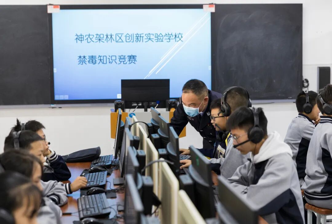 10月17日,神农架林区禁毒办联合教育局,深入各学校开展禁毒宣传教育,现场指导同学们运用青骄第二课堂参加禁毒知识学习和禁毒知识竞赛活动。