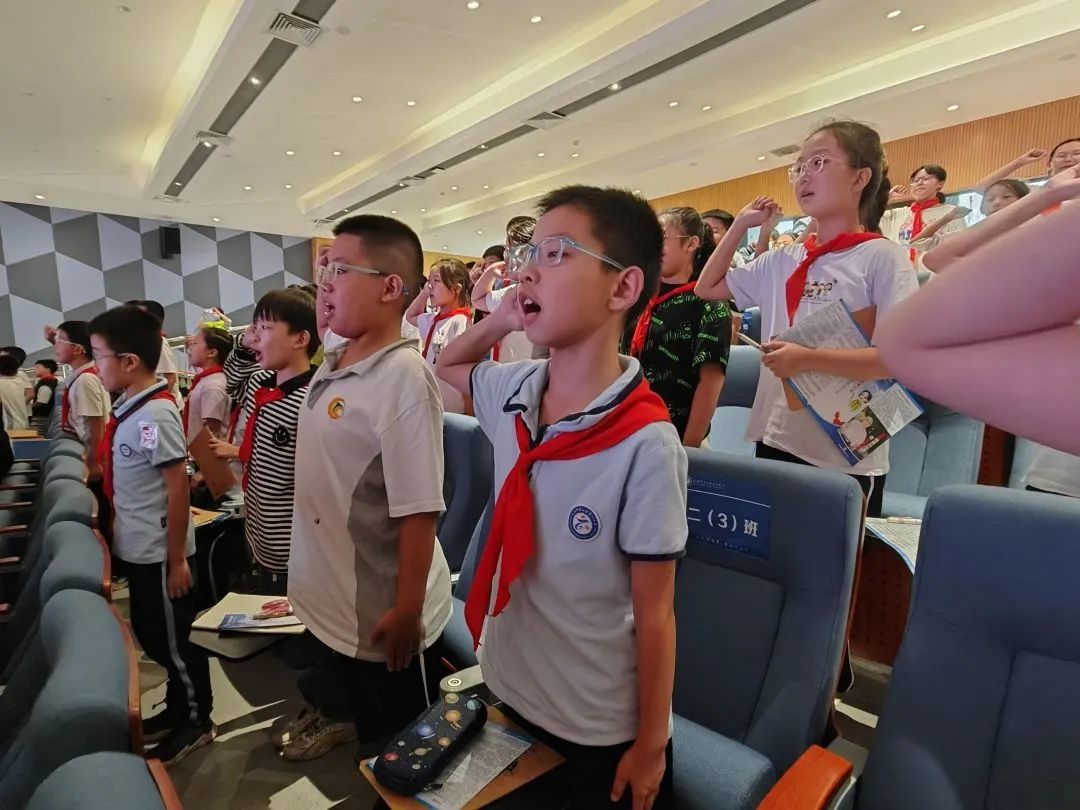 讲座接近尾声时,王欣老师带领全体学生宣誓,并呼吁同学们把讲座过程中分发的禁毒知识的相关资料带回家和家长一起学习,从而达到“教育一个孩子,带动一个家庭,影响整个社会”的目的。