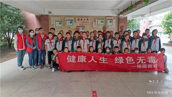 为提高青少年自身防毒拒毒意识,了解禁毒知识,扩大青少年毒品预防教育宣传覆盖面,保障青少年健康成长,构建和谐美好无毒社会,10月12日上午,武昌区杨园街道中心戒毒社区联合武汉市杨园学校开展“健康人生 绿色无毒”禁毒宣传进校园宣传活动。