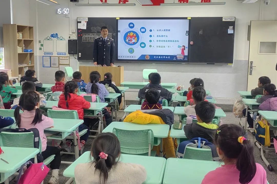 武汉市海关缉私局走进武汉市江汉区大兴实验小学开展反走私普法教育和禁毒宣传,通过主题班会、互动问答、模型展示等方式,为学生上了一堂精彩有趣的反走私知识课。