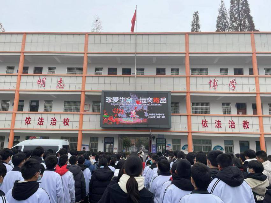“你们知道怎么样识别毒品?毒品有哪些危害吗?”12月13日,孝感市公安局孝南区分局朱湖派出所所长、朱湖中学法治副校长程朝阳再次来到朱湖中学,面对面给学生宣讲禁毒防毒知识,现场向学生传授远离毒品的方式方法。