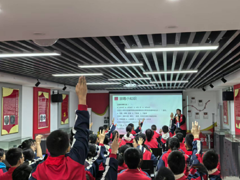 讲解结束后,社区工作人员用禁毒知识抢答来检验学生们的学习成果,学生们纷纷积极举手作答,现场气氛浓厚。