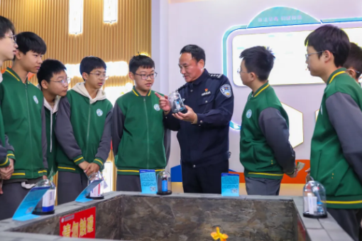 公开课结束后,同学们参观了位于荣怀中学大门东侧的青少年禁毒教育中心。禁毒民警、禁毒社工利用仿生毒品模型,细致地讲解毒品的种类、新型毒品的伪装形式,以及如何有效预防毒品,并现场答疑解惑,引导同学们牢记毒品危害,呼吁他们踊跃参与禁毒宣传,多向亲朋好友传递禁毒知识。
