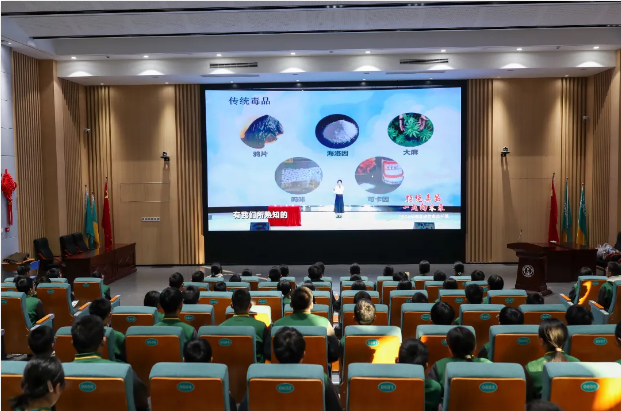 在荣怀中学阶梯教室,校方组织学生代表集中观看了“拒绝毒品,一起向未来”2024年湖北省禁毒公开课。通过禁毒三字经、舞台剧、辩论赛等精彩节目,同学们更直观地了解了毒品对个人、家庭、社会的严重危害,提升了自觉远离毒品的意识。