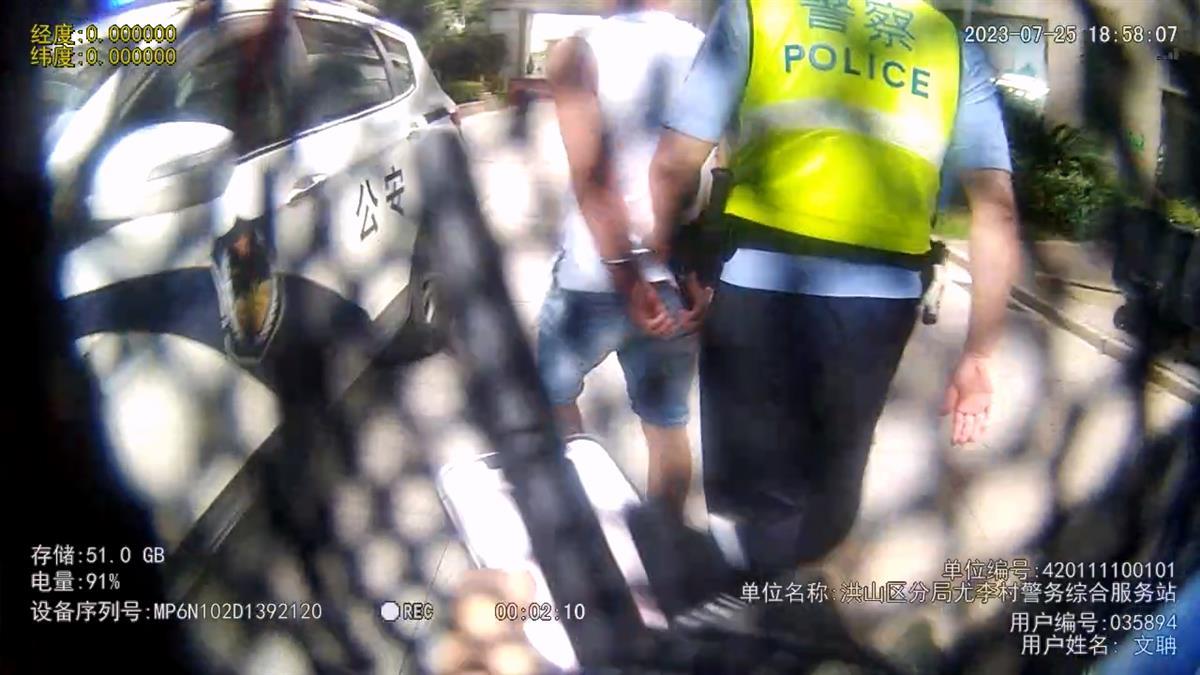 7月25日下午6时52分,武汉市公安局洪山区分局张家湾警务站接到群众举报,有一名贩卖毒品的嫌疑人在某小区附近出没。根据警务站民警在日常工作中对网上在逃人员名单的梳理,发现该人正是网上在逃人员陈某,民警立即带领辅警驱车赶往现场。